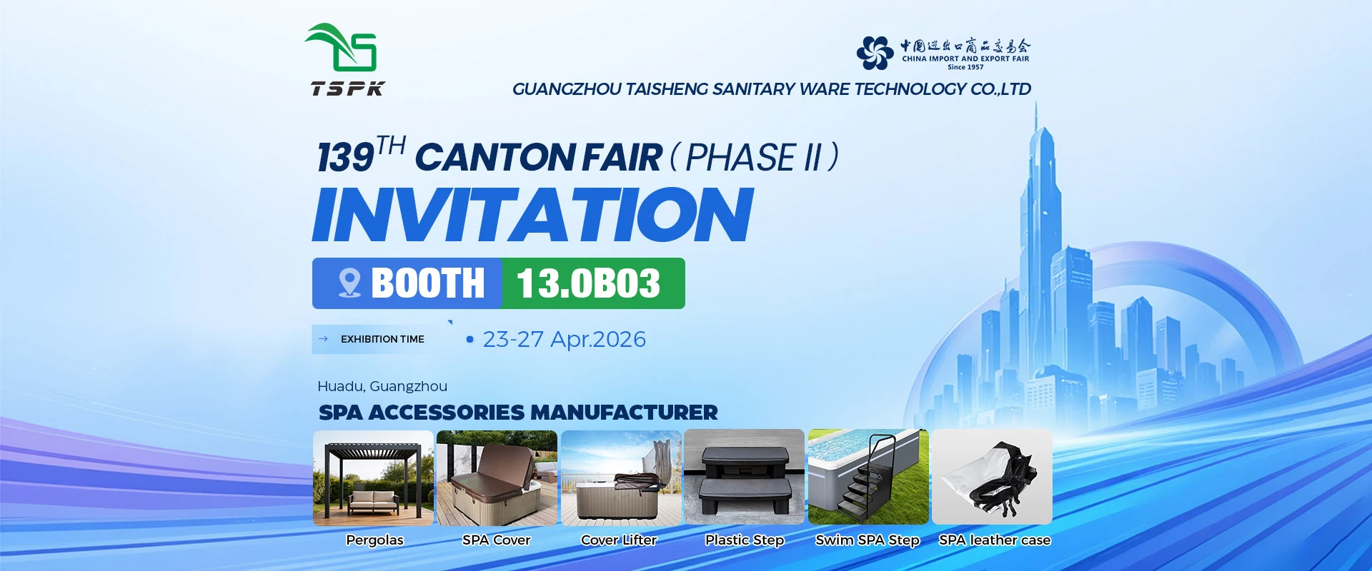 Guangzhou Taisheng sanitaartehnikatooted Technology Co., Ltd, asutatud 2003. aastal ja asub Guangzhou linnas, on Hiina kõige professionaalsem spaakatete ja spaatarvikute tootja. Rikkaliku kogemusega klientidele mitmete originaalseadmete tootjate lahenduste pakkumisel, et täita nende esmatähtsaid nõudeid, ning pidevalt arendatud ja täiustatud sihikindluse ja tegevusega oleme võitnud endale rohkem võimalusi teha koostööd maailma tippettevõtetega ning ausõna, naudime Euroopas kõrget mainet. ja Põhja-Ameerika turgudel. Meie allkirjatooted on pealekäitav kate, ekstra termokate, talvine veerekate, H-kujuline ujumispaagi kate, hüdraulilised tõstukid, sünteetilised Swimspa trepp ja survevalu plastist aste.